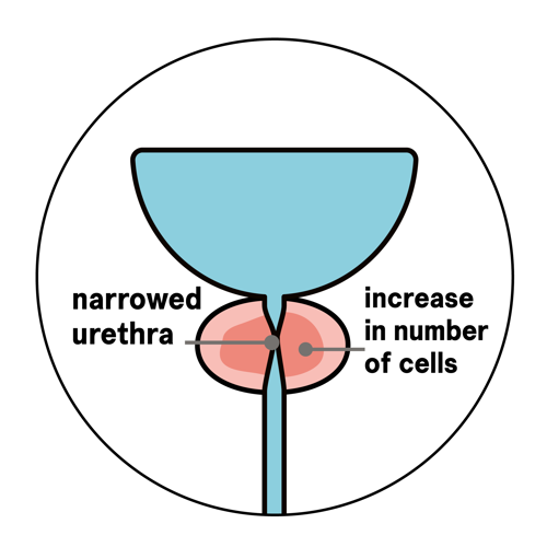 You might also hear it called benign prostatic hyperplasia (BPH). Hyperplasia means an increase in the number of cells. It is this increase in cells that makes the prostate grow bigger (see diagram below). In our information, we use the words 'enlarged prostate' to describe both BPE and BPH.
