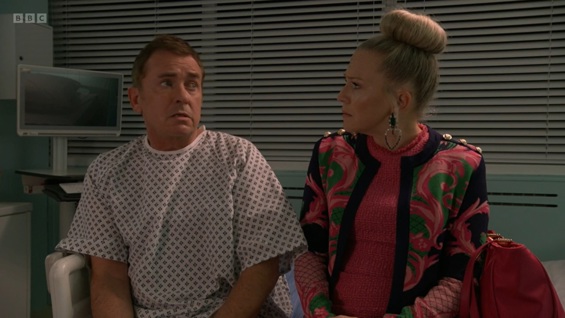 Alfie Moon visits the hospital after being attacked and blood is found in his urine. Following a CT (computed tomography) scan, the doctors advise Alfie that this may be a sign of prostate cancer, and more tests are needed.
