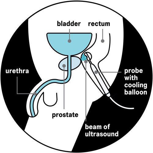 Your surgeon will place a probe inside your back passage (rectum). The probe gives out a beam of high-intensity ultrasound energy, which travels through the wall of the back passage into the prostate. The beam treats one small area of the prostate at a time – the size of a grain of rice.